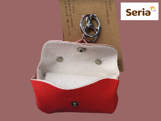 ■セリア(2018〜) レザー調(ポリウレタン製)の小物入れ。 サイズ:約12cm × 5cm (中国製)