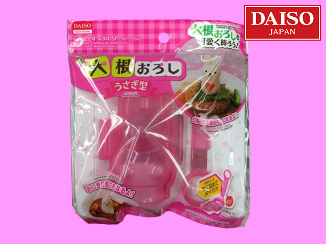 ダイソー 大根おろしで、キャラクタ(ウサギとクマ)が作れる押し型。 ゴハンを入れて、オニギリ型にもなる。 (中国製)