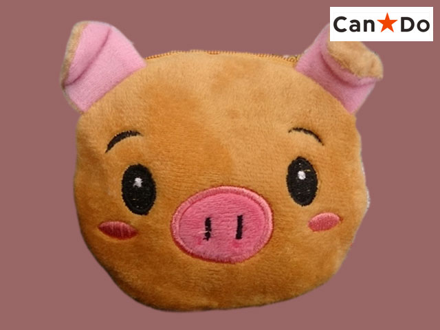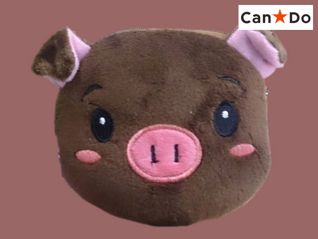 ■キャンドゥ(2018〜) 松野工業(株)製、アニマル型のミニポーチ、こぶた。 幅で約17cmほど。 (中国製)