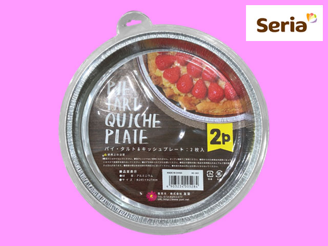 セリアほか(2018〜) アルミ製のプレート。直径24.5cm、高さ2.7cm、2枚入り。 レンジは不可。 (中国製)