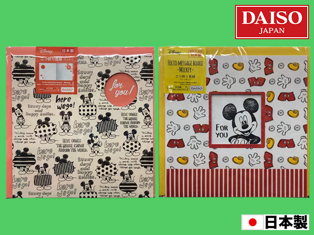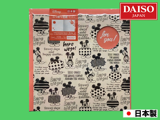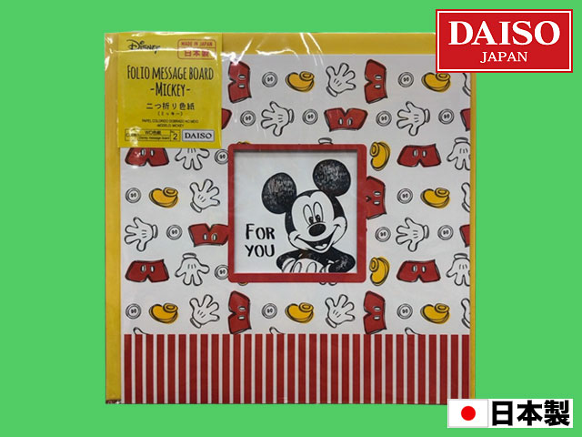 ■ダイソー(2018〜) ディズニーの二つ折り色紙シリーズからミッキー。 サイズ:二つ折り状態で約17cm×17cm 他、トイストーリー、アリエル、モンスターズインクなどがある。 (日本製)