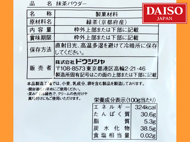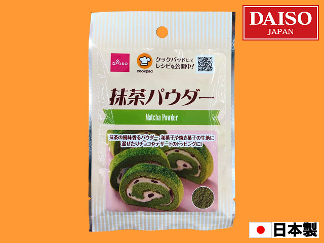 ■ダイソー(2018〜) 抹茶風味の菓子を作れるパウダー。京都産の茶葉を使っている本格派。 内容量:8g(2019年2月現在) 画像①は、2020年からの新パッケージ。 ※クックパッド、特設ページはこちら。