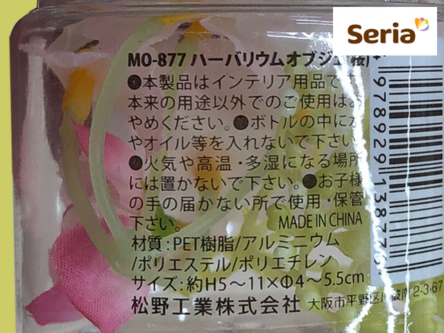 ■セリア(2019〜) 小瓶のハーバリウム、フェイクの桜。 高さ、約5cm (中国製)