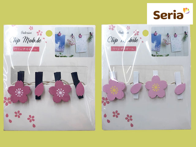 ■セリアほか(2019〜) 木製クリップのついたモビール。 全長は90cm。クリップ4個。 白と黒の2種類がある。