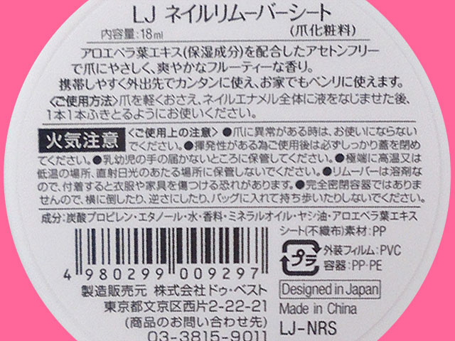 ■ダイソーほか、セリア・キャンドゥ・ワッツでも販売 フィルム式のネイルリムーバー。 香りがよく落ちもいいと、ネットでの評価も上々。 50枚入り (中国製)