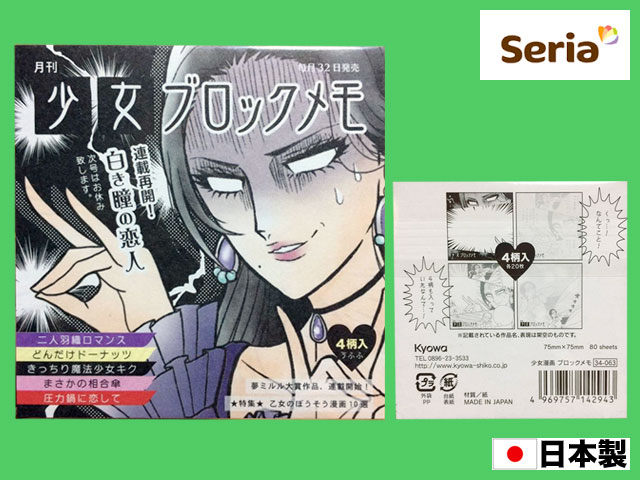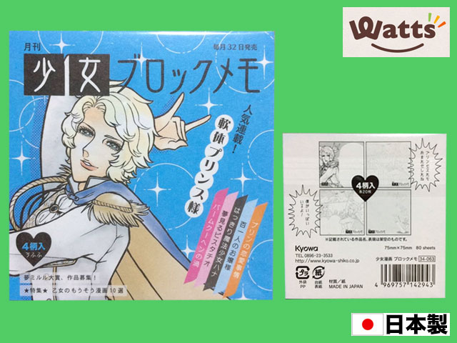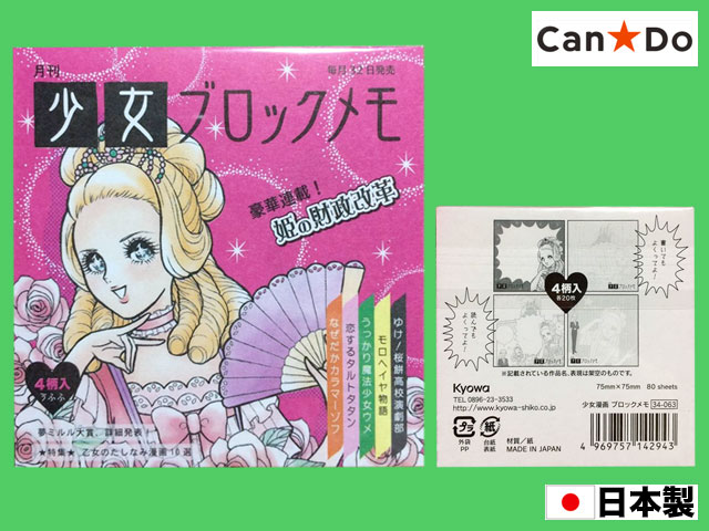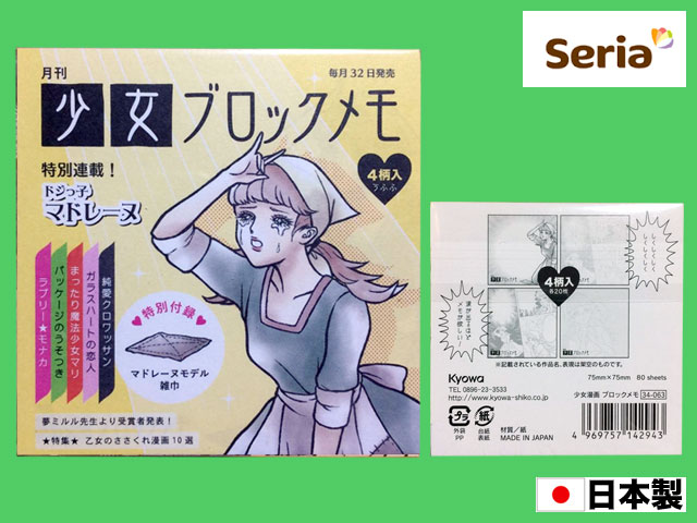 協和紙工の昭和風『少女漫画』シリーズから、ブロックメモ4種類。