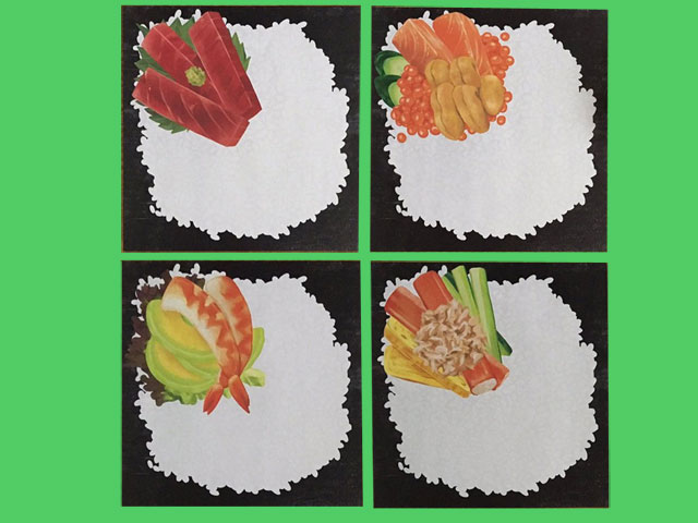 ■セリアほか 手巻き寿司のデザインペーパー、4種類・36枚入り。 サイズ:15cm×15cm (日本製)
