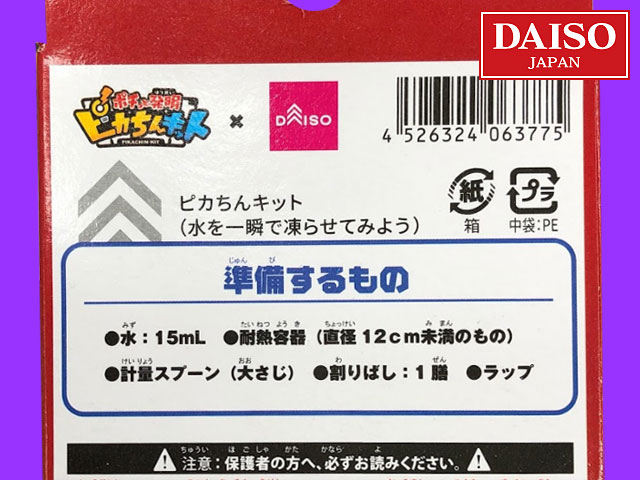■ダイソー(2019〜) 学研の自由研究用、実験キットシリーズから。 2019年から追加された『水を一瞬で凍らせてみよう!』