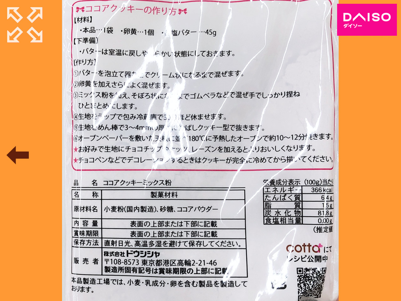 ダイソー/プレーンクッキー ミックス粉