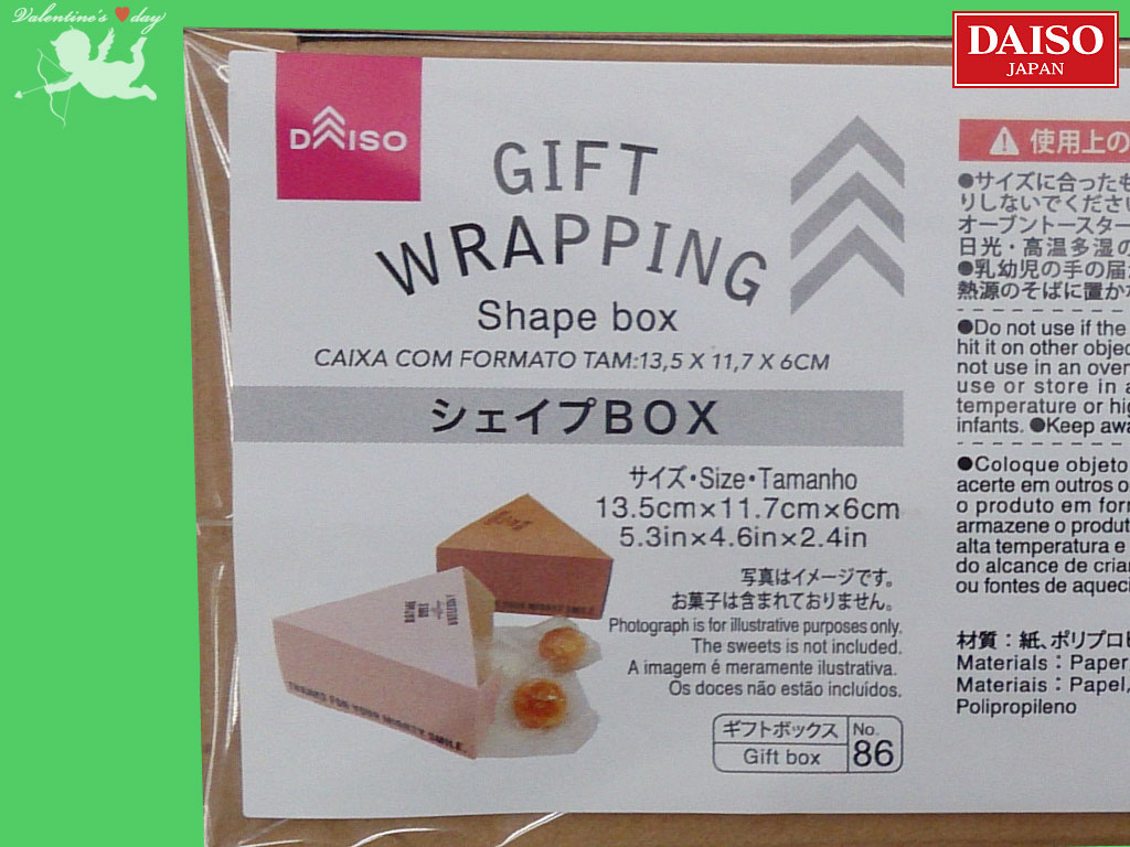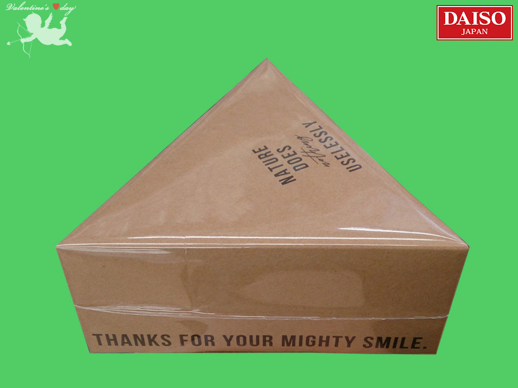 ■ダイソー(2020〜) 三角形のギフトボックス。タイ付き。 サイズ:13.5cm × 11.7cm × 高さ6cm (中国製)