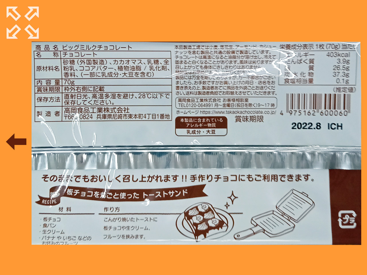 キャンドゥほか 高岡食品製のミルクチョコレート。 容量は70gと多めで、チョコレート菓子を作るための材料として重宝。 バリエーションとしてホワイトチョコもある。