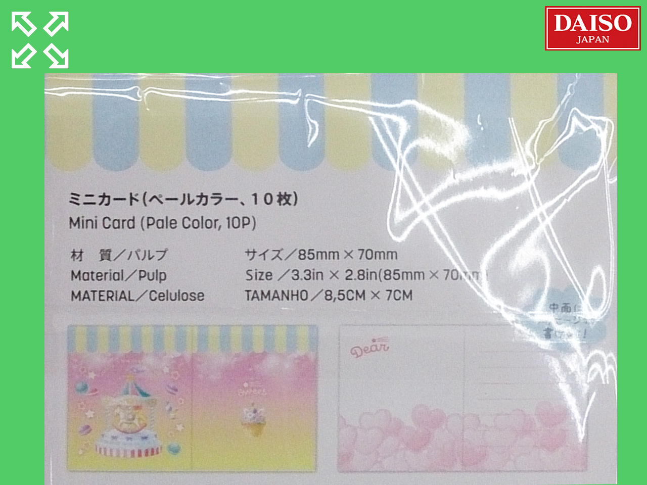 ■ダイソー(2020) 2020年バレンタインに発売された、ゆめかわ系メッセージカード。 サイズ:8.5cm×7cm 10枚入り (中国製)