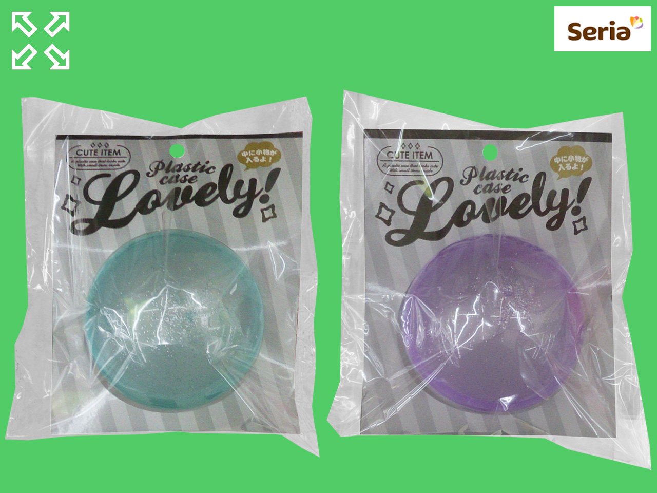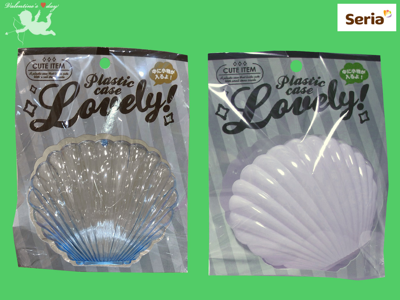 セリア(2020〜) ユニコーン型のクリアプラスチック製ギフトボックス。ブルーとピンクの2色。 シリーズになっており、フラミンゴ型、星型、ハート型がある。 ①メルヘン:13cm×10cm×6cm ②シェル :10cm×12cm×5.5cm ②ボール :直径約10cm 発売元:松野工業株式会社 (中国製)