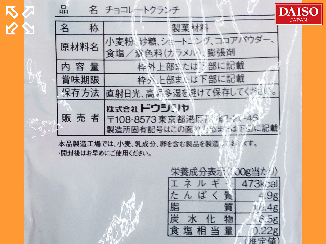 ダイソー(2020〜) ダイソーの製菓材料、トッピング用チョコレート味ビスケット。 内容量:25g 発売元:株式会社ドウシシャ