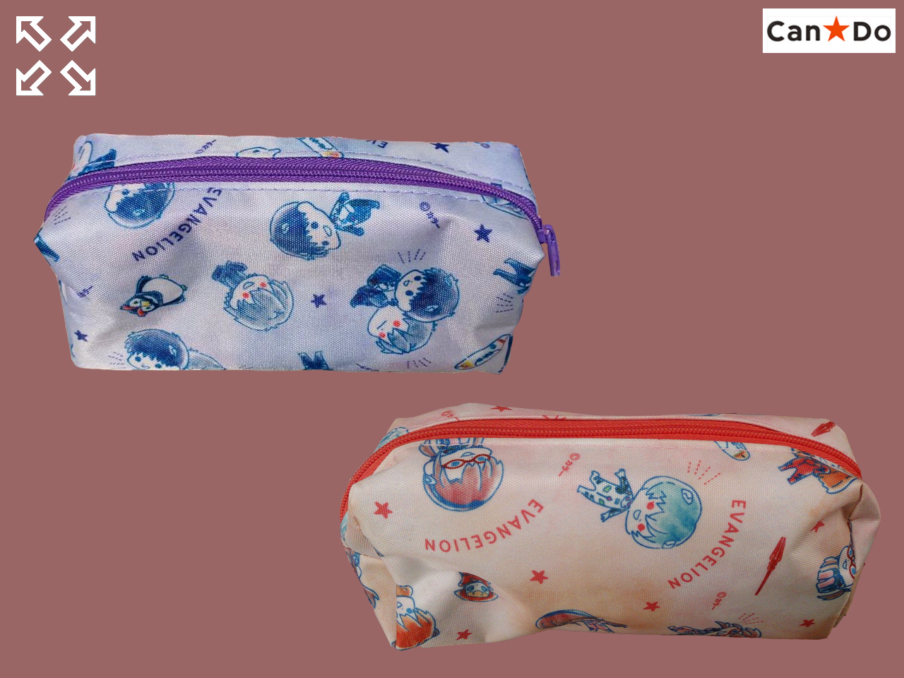 ■キャンドゥほか(セリア、ワッツでも販売) 2019年11月下旬から販売された期間限定「エヴァンゲリオン」コラボ商品から。ポーチ。 エヴァパイロットキャラとナンバーは全アイテムに共通。 サイズ:14cm×6.5cm (マチ4.5cm) 形状の違う舟形もある。 (中国製) エヴァンゲリオン公式ページ