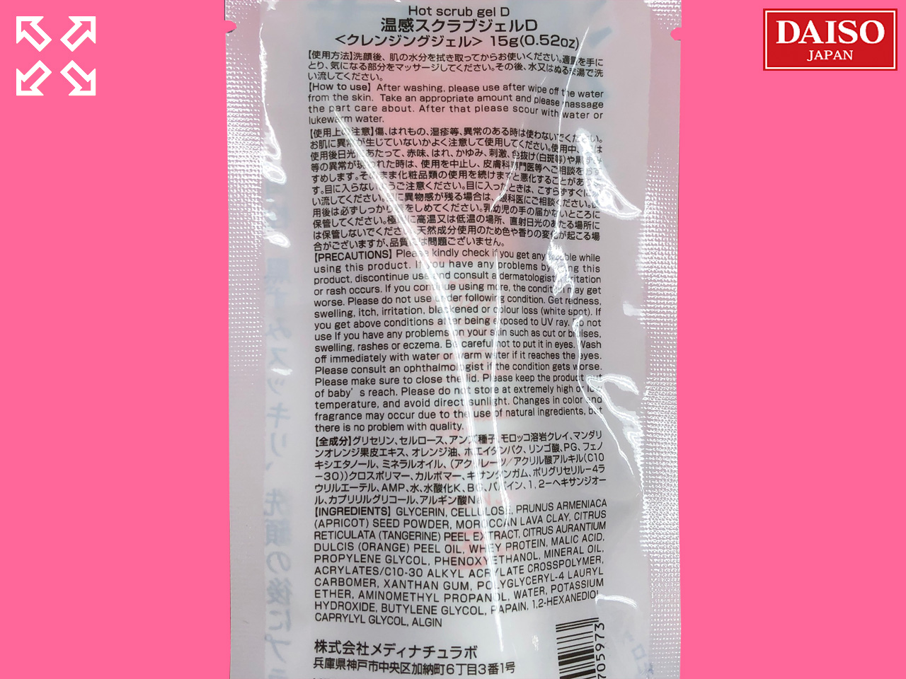 ダイソー(2019〜) スクラブ入り毛穴ケア用のジェル。 内容量は18g (日本製)