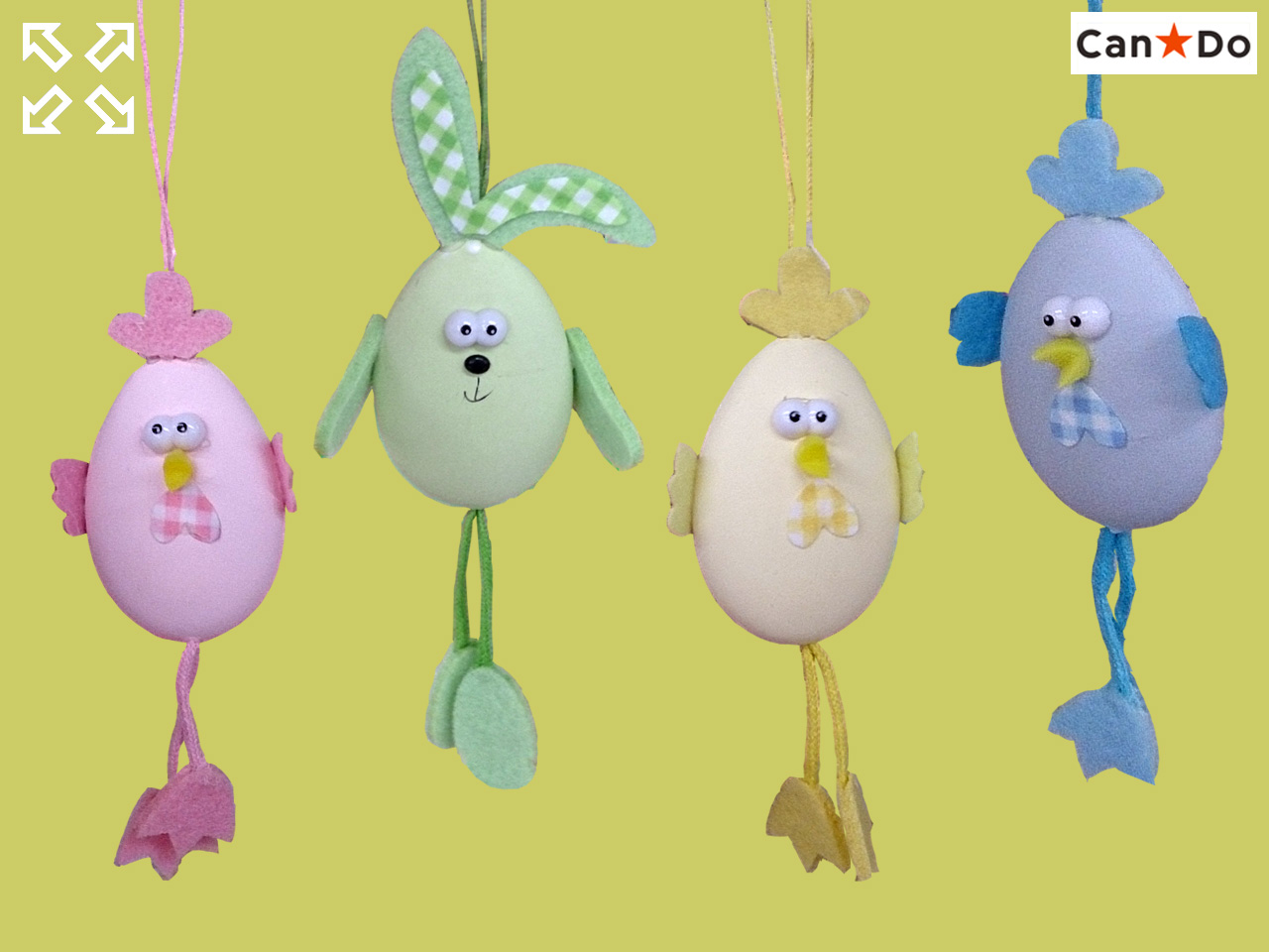 ■キャンドゥ(2020) イースターの卵マスコット。鳥とウサギ。 色は、それぞれ4色。 ウサギの耳は、数種類形状があるようで、全部で何通りかよくわからない。 全長は、紐、耳(トサカ)部分を含まず10cmほど。 (中国製)
