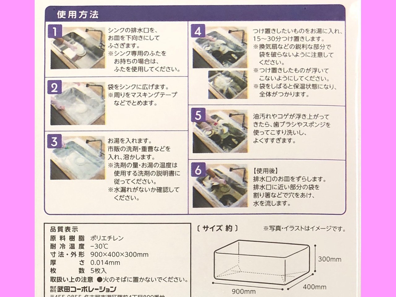 ワッツほか(2020〜) シンクいっぱいに広がるつけ置き洗い用の袋。 比較的硬く、衣装の収納にも使える。 サイズ:90cm×40cm×深さ30cm (インドネシア製)