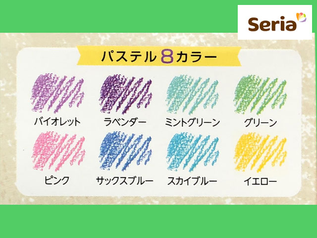 ■セリア(2019〜) パステルカラーの色鉛筆、8色セット。 カラーは画像2の通り。 (中国製)