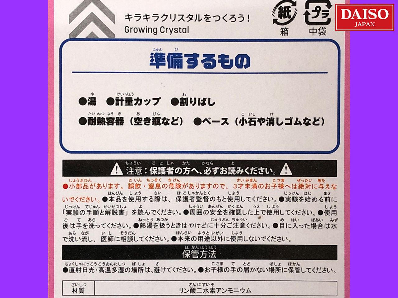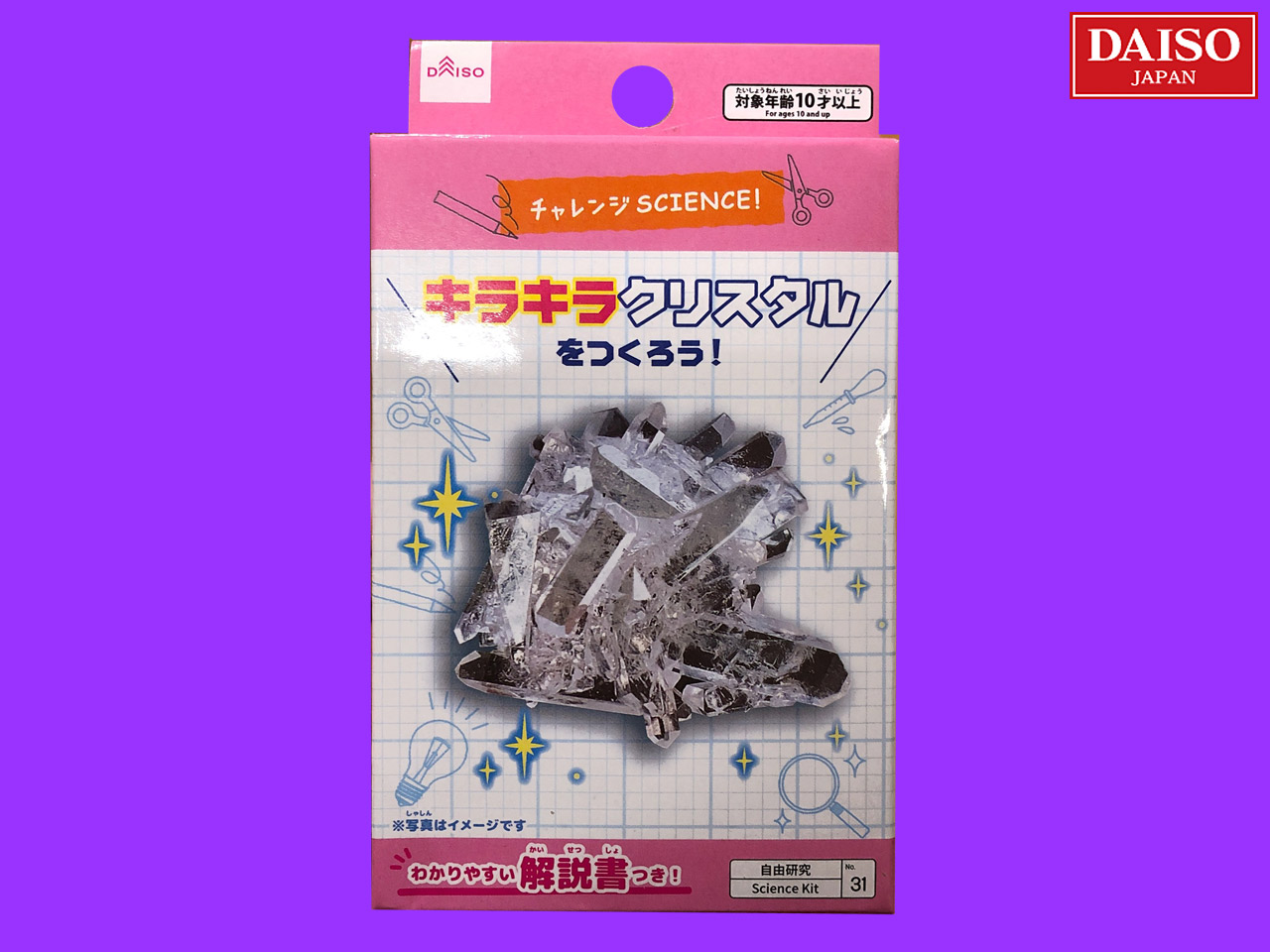 ■ダイソー(2020〜) 2020年に装いも新たになったダイソーの自由研究キット。『キラキラクリスタルをつくろう』。 (中国製)