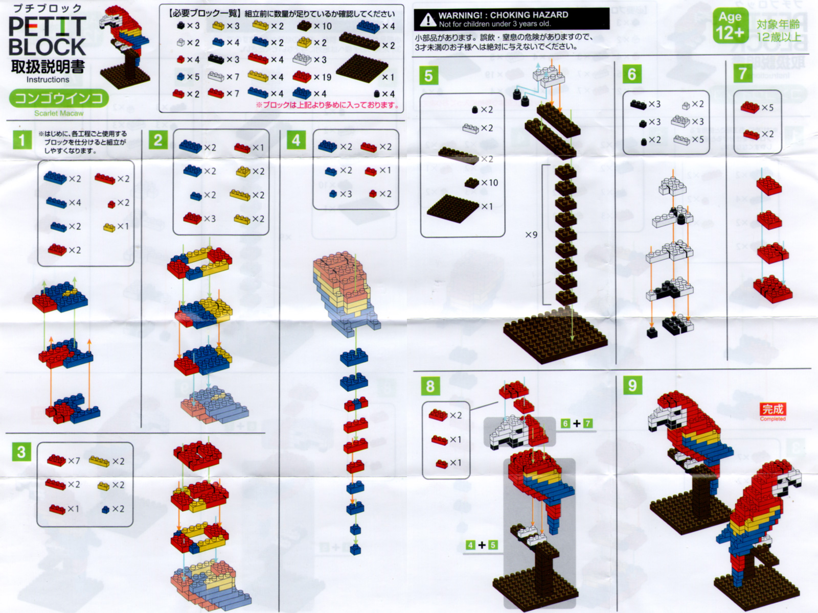 ダイソー ダイソーのトイブロック『プチブロック』の『野生動物(ジャングル)』シリーズから。コンゴウインコ。 画像2の設計図は、拡大できます。 ※拡大操作(ピンチイン)は、画像の上ではなくテキストのところで行ってください