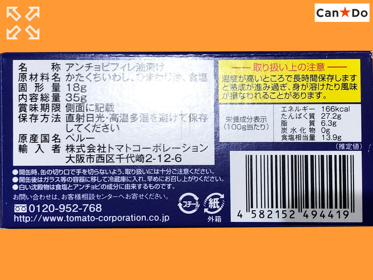 キャンドゥほか ペルー産かたくちイワシの本格的アンチョビ。 内容量:35g (ペルー産)