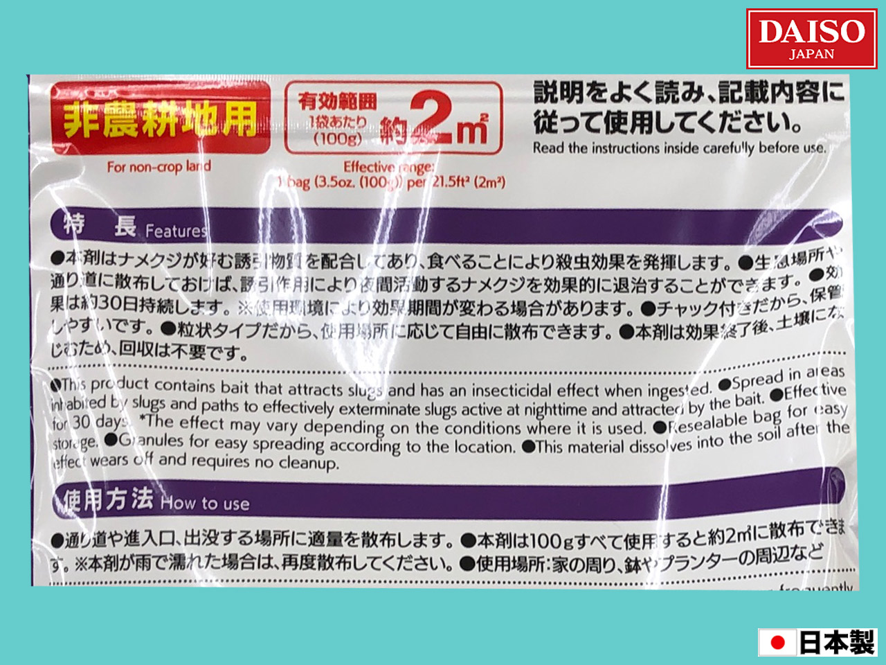 まくだけで、ナメクジを駆除できる粒状タイプの殺虫剤。非農耕地用。