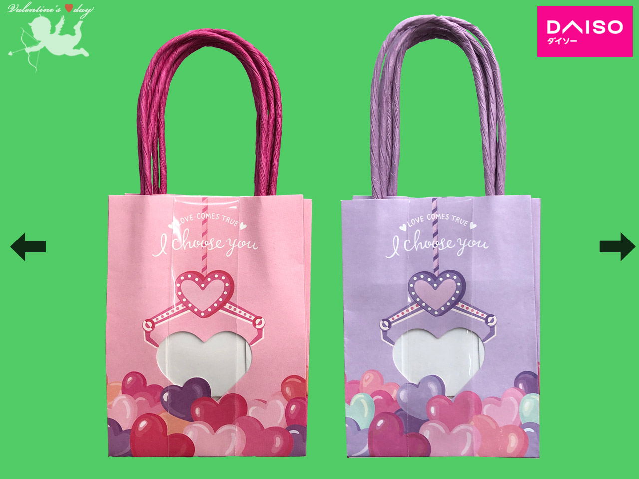 ■ダイソー(2021〜) バレンタイン、ギフト用のミニ紙袋。『ゲーム』と『くまちゃん』、それぞれ2色。 サイズ:9cm × 12cm × マチ3.5cm 3枚入り (中国製)