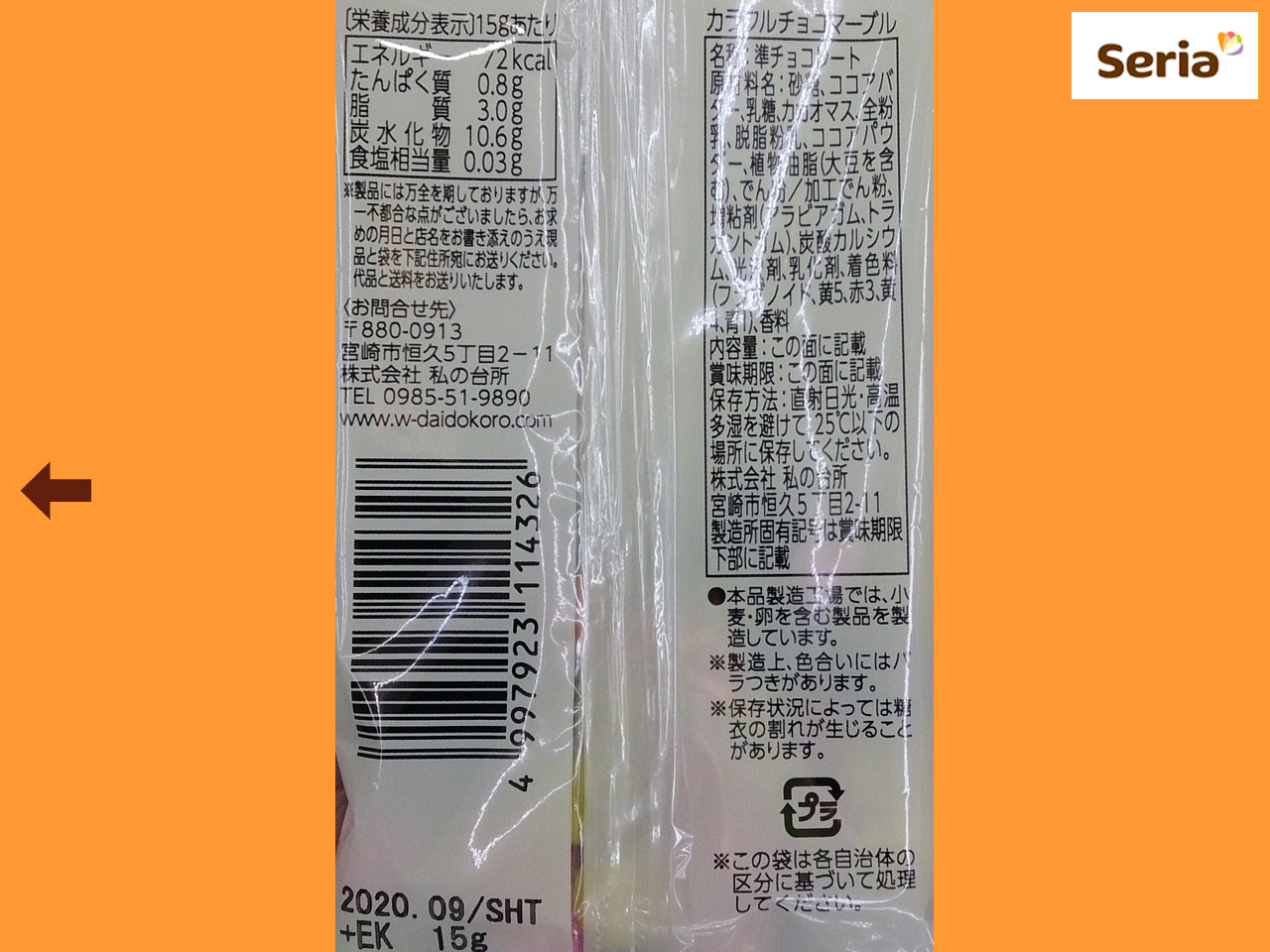 セリアがシリーズ展開している製菓用の材料。トッピング用のマーブルチョコ。