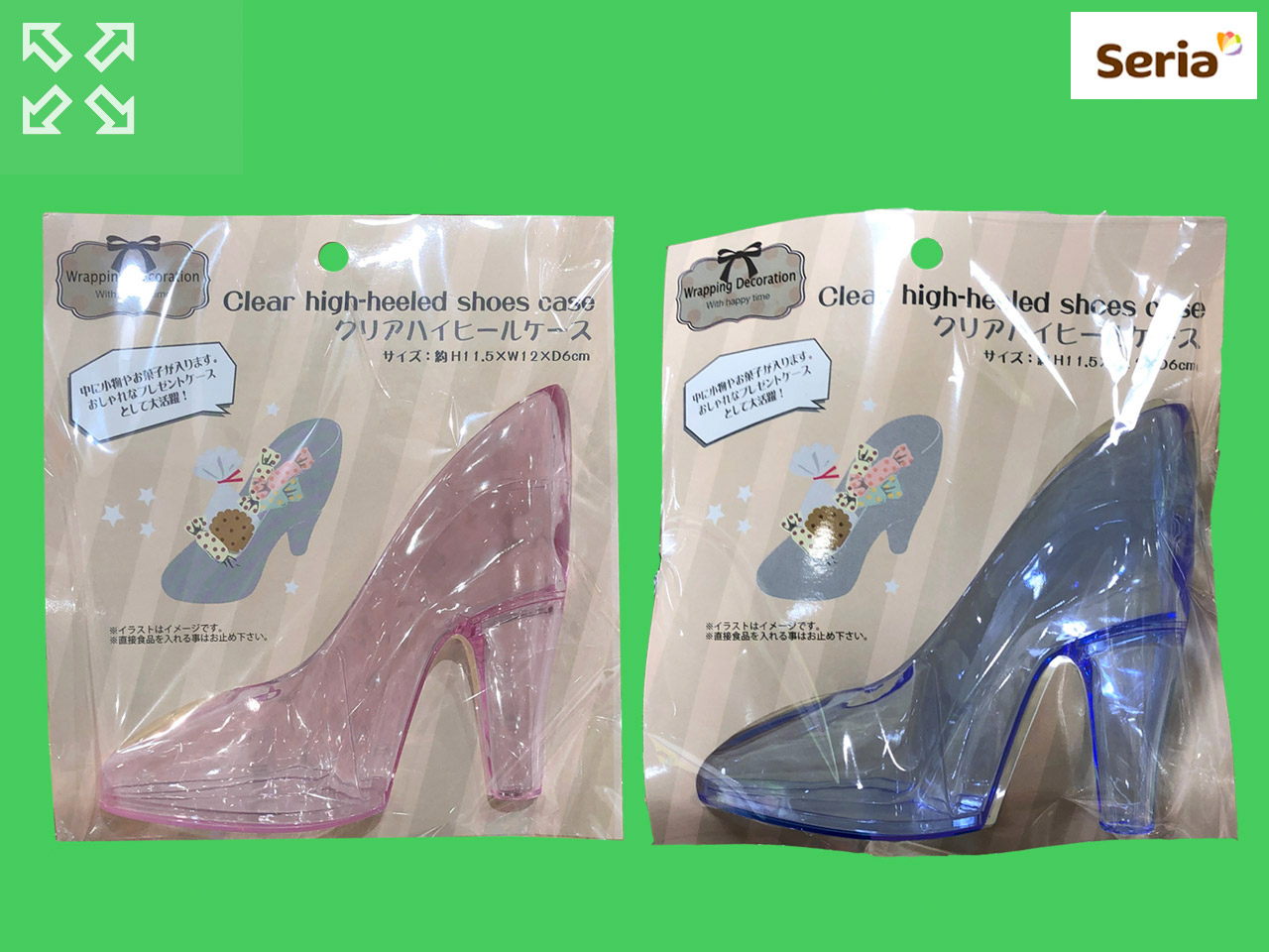 ■セリアほか(2021〜) プラスチック製のクリアケースシリーズから。シンデレラ風のクリアヒール。 ピンクとブルー、クリアの3色がある(2021年2月現在) サイズ:H11.5cm×W12cm×D6cm 松野工業(株)製