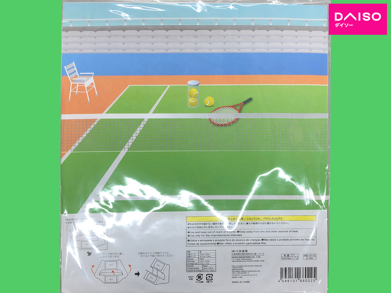 ■ダイソー(2020〜) テニスボールをかたどった色紙。 封筒、オリジナルスタンド付。 (中国製)