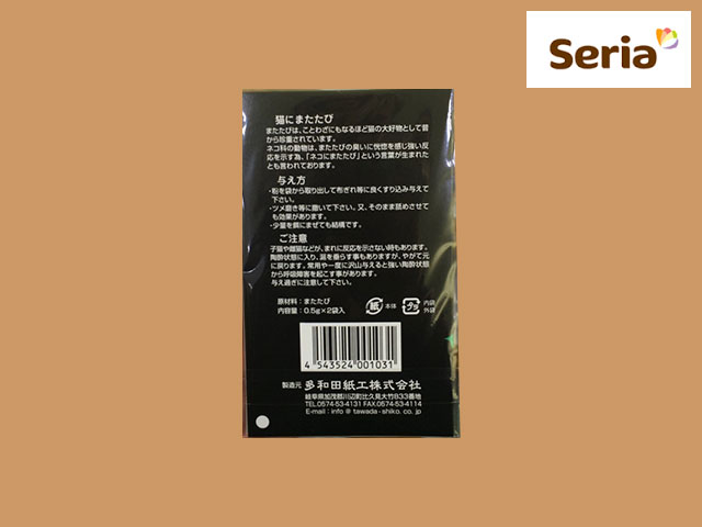 ■セリア 猫のストレス解消に必須のマタタビ。 稀に「酔っぱらわない」猫もいるので、試しで100均はありがたい。 ちなみに、虎にもライオンにも効果がある。飼っている方はぜひ。