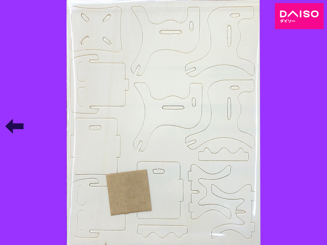 ■ダイソー(2020〜) キャンドゥのヒット商品だったウッドクラフトを、ダイソーは3Dパズルとしてシリーズ化した。こちらはソファーセット。 パズルなだけあり、キャンドゥのような縮尺の統一感はないようだが、対象年齢も6歳〜となっている。 紙やすり付き。 (中国製)