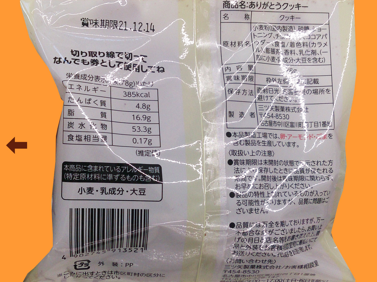 ダイソー(2021〜) 母の日、父の日用のクッキー。 プレゼント『かたたたきけん』『おてつだいけん』『なんでもけん』の3種類がある。 内容量:78g