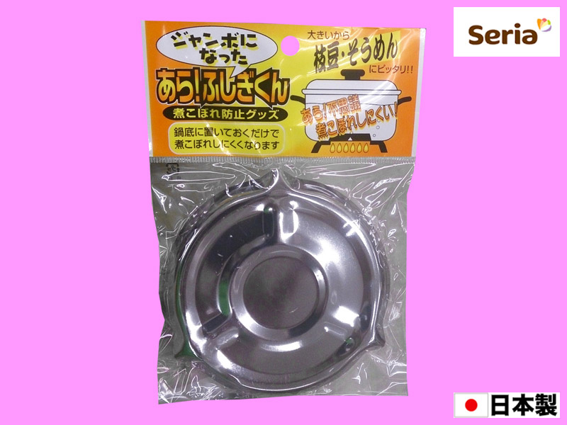 セリアほか 鍋底に敷いておくと、吹きこぼれが防げるというグッズ。 amazonでも販売されているが、レビューはイマイチ。 材質:ステンレススチール サイズ:11.5cm×11cm×1cm 発売元:(株)エコー金属