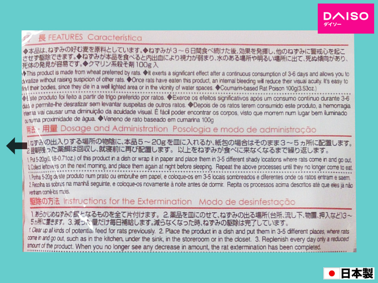 ■ダイソー 麦から作られているクマリン系殺そ剤。 内容量:100g (日本製)
