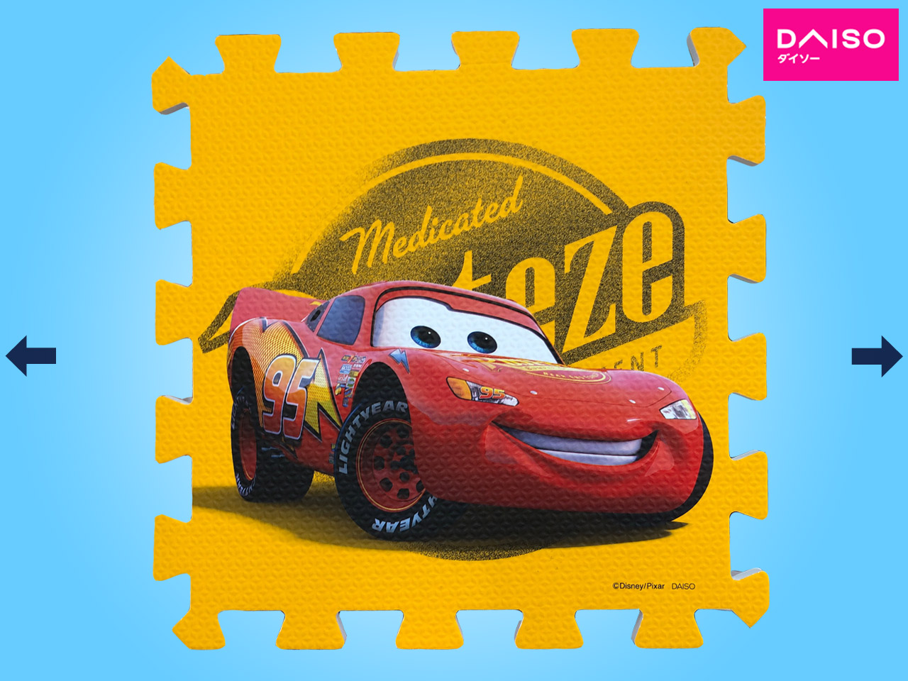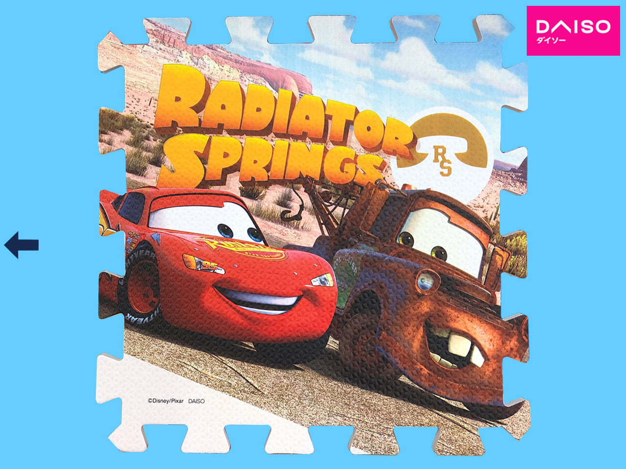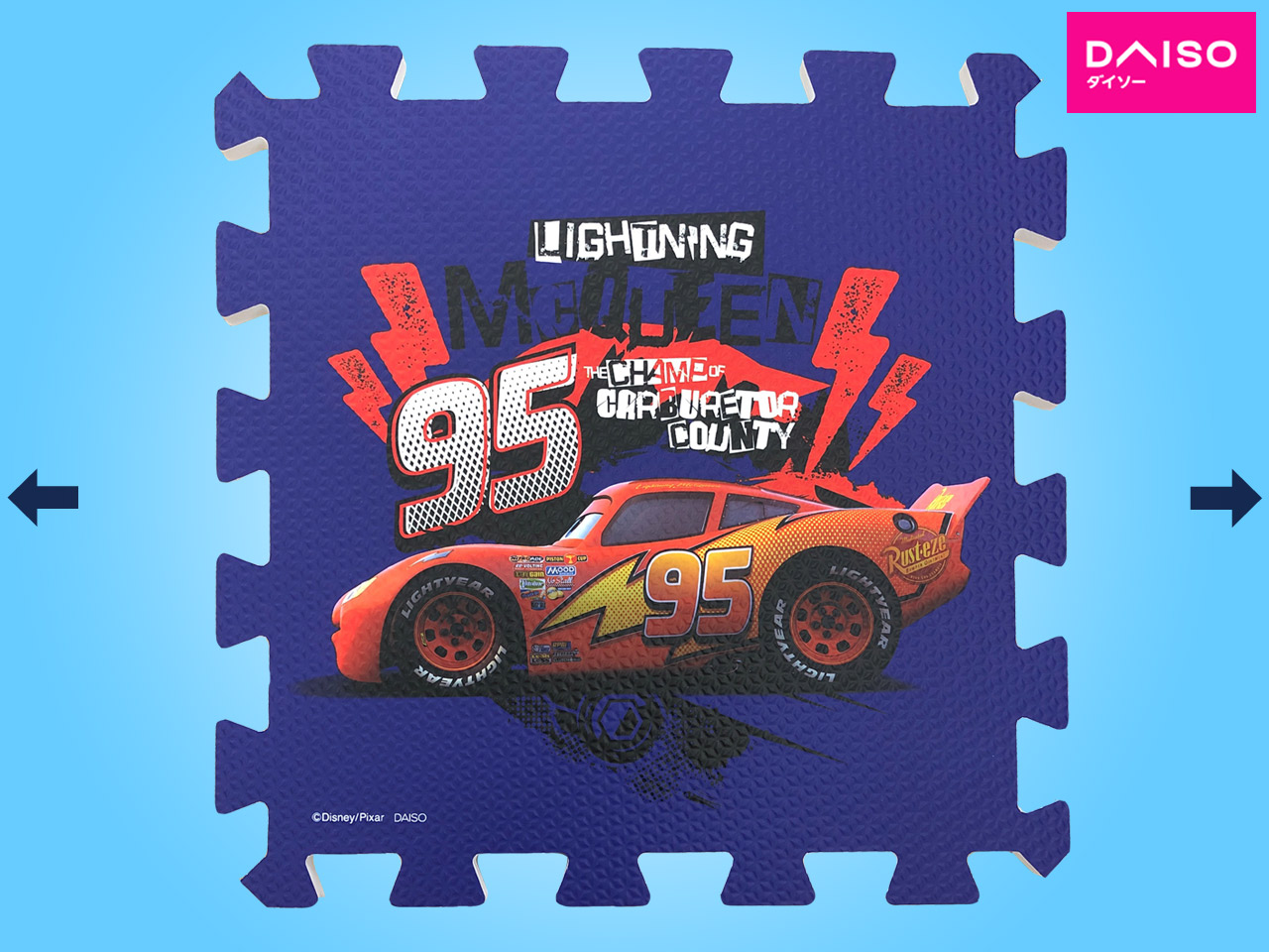 ■ダイソー(2021〜) ディズニーの組み込み式マット、Pixerの『カーズ』。 サイズ:32cm × 32cm 他に、ミッキー&フレンズ、トイストーリー、ディズニープリンセスのシリーズがある。 (中国製)