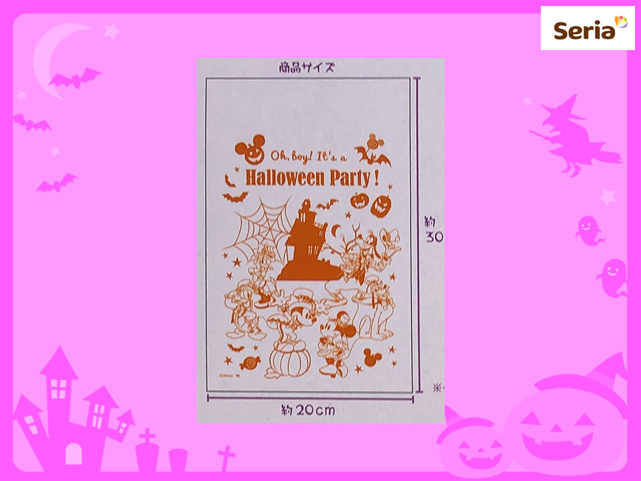 ■セリア(2021〜) ハロウィンモチーフ柄のポリエチレン製ビニール袋 耐冷温度 -30℃ 厚さ 0.015mm サイズは30cm×20cm 30枚入り。 (中国製)