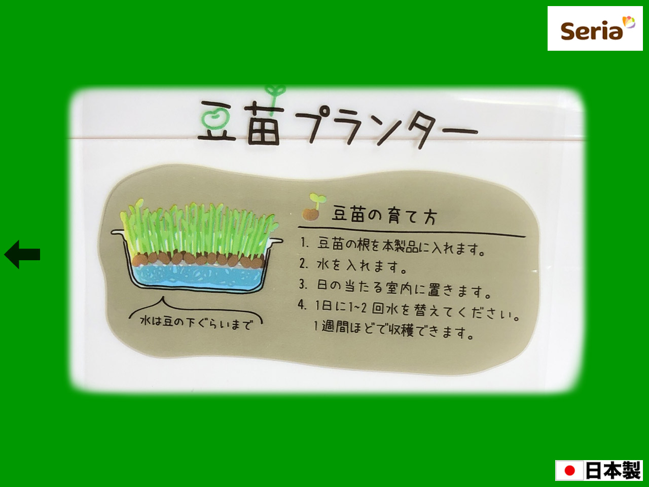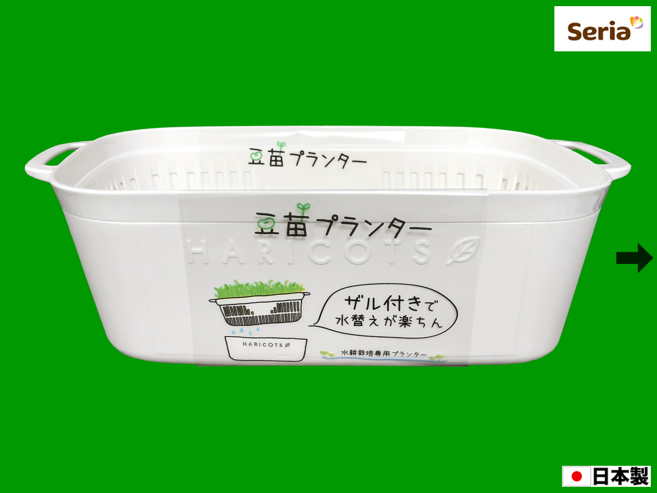■セリアほか(2021〜) 豆類の自家栽培用プランター。 ザル付きなので、水替えが簡単。 サイズ:21cm×12.5cm×6.4cm 発売元:山田化学株式会社 (日本製)