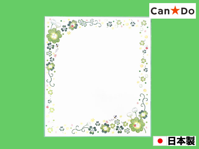 ■キャンドウ(2015〜) 手描き風のクローバーをあしらった色紙。 花柄同様、いまひとつ上手くないのが、いかにも手描き風。もちろんそこを狙っている。ちょっと見、印刷とは思えない。 サイズ:縦27.2cm × 横24.2cm (日本製)