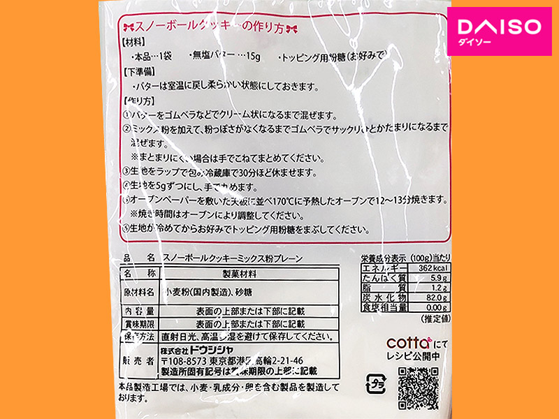 ダイソーがシリーズ展開している製菓材料。スノーボール型クッキーのミックス粉。