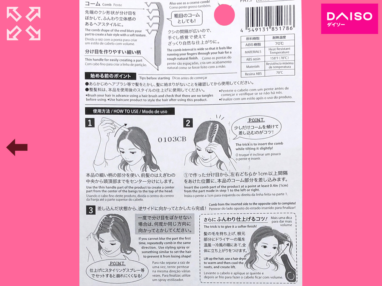 セリア/空気を含ませふわっと仕上がる手付きコーム