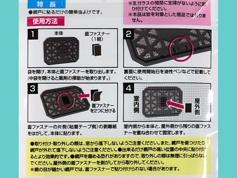 こちらは網戸に吊り下げるタイプで、60日効果があるという。