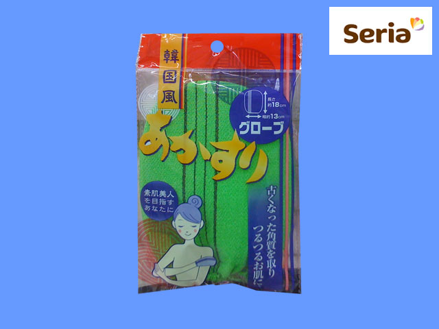 セリアほか(2015〜) グローブ状の韓国風あかすり。 サイズ:18cm × 13cm (中国製)
