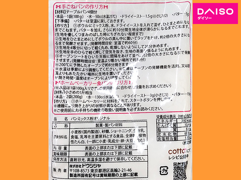 ダイソー/パン ミックス粉《プレーン》