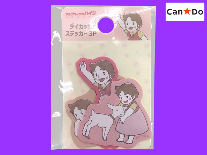 アニメ『アルプスの少女ハイジ』50周年記念、キャンドゥのコラボ商品から。ダイカットシール3P。