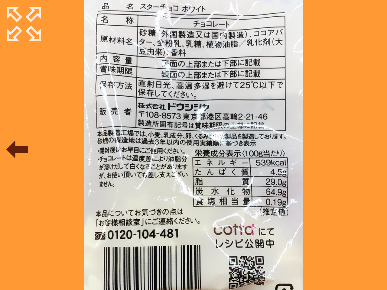 ダイソーのシリーズ展開している製菓用材料、スター型のホワイトチョコチップ。