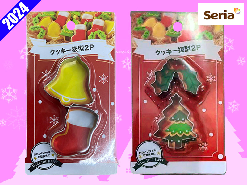 [期]セリア/クッキー抜き型2P《サンタ・トナカイ・プレゼント・スノーマン》