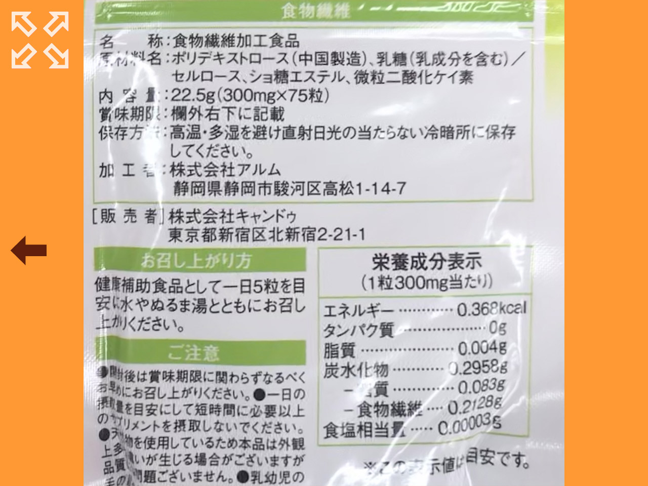 キャンドゥのオリジナルサプリメントから、「食物繊維」。