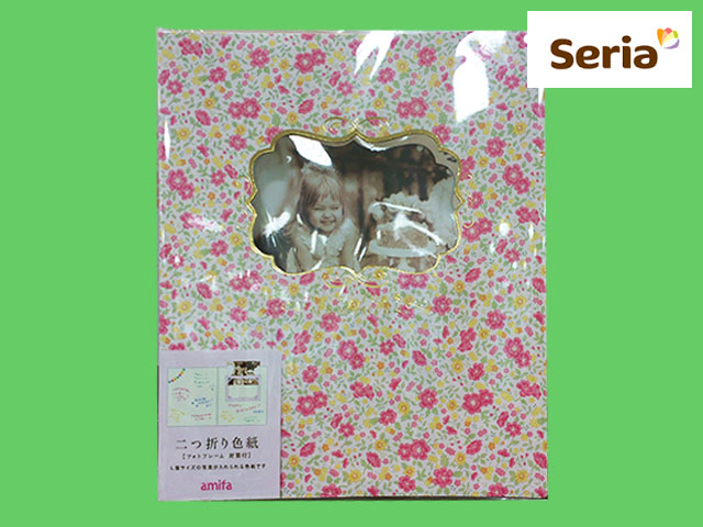 ■セリアほか フォトフレーム型二つ折りの色紙。 小花をあしらった可愛らしい表紙は、窓枠状になっていてフォトフレームとしても使用できる。 フレーム部分にはL版サイズの写真が入れられる。 表紙の種類は、白系とピンク系。色紙が入る封筒つき。 開いた時のサイズ:幅38.1cm × 縦22cm